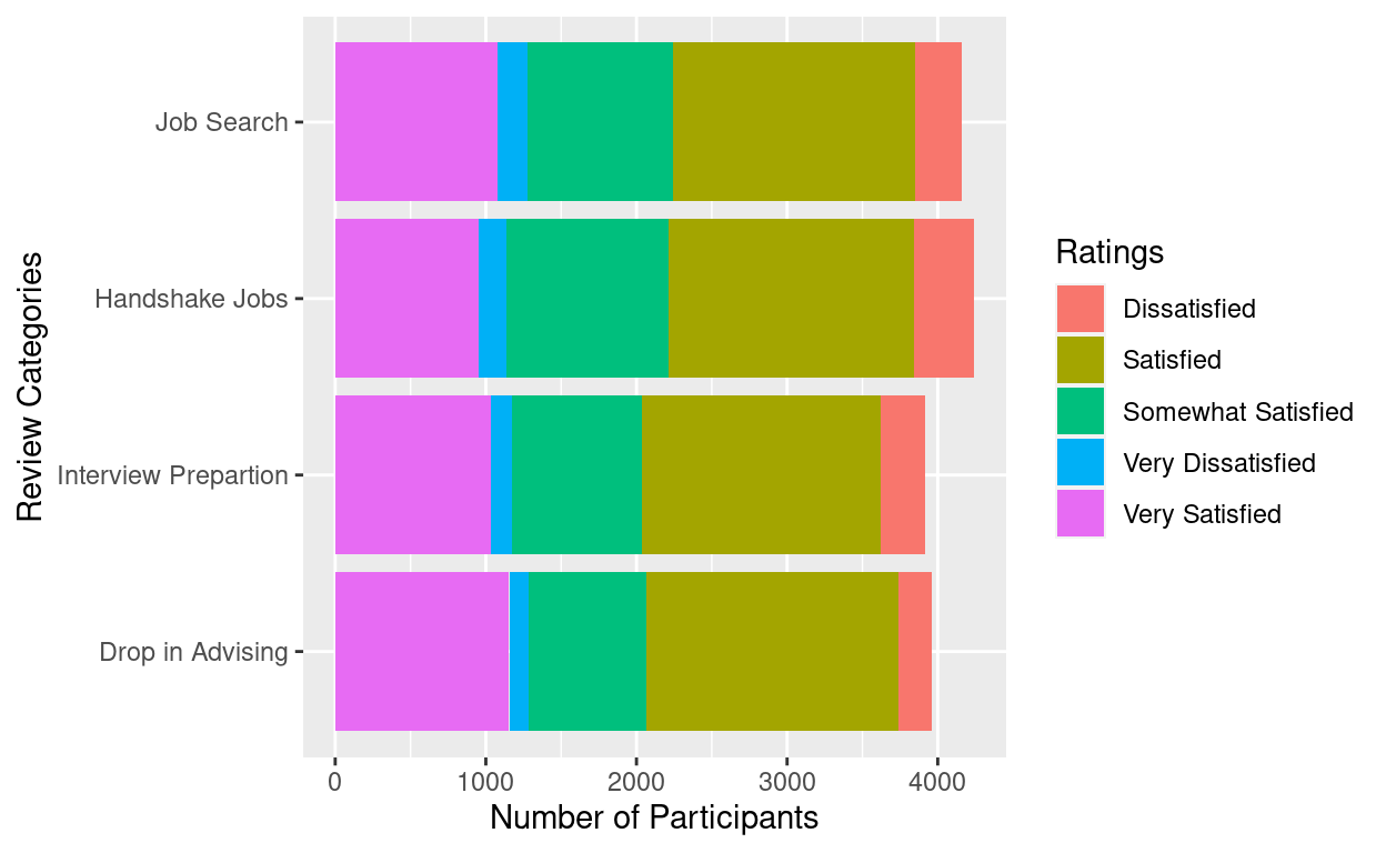 This is an analysis of the levels of satisfaction for various GVSU career center services.
